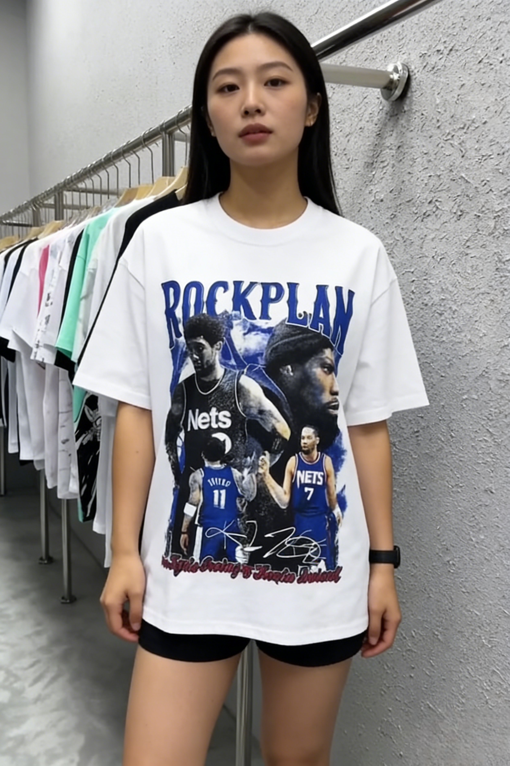 - Primary Keywords: 100% cotton T-shirt, oversized streetwear T-shirt, Brooklyn Nets graphic tee, vintage basketball shirt, wholesale cotton T-shirts