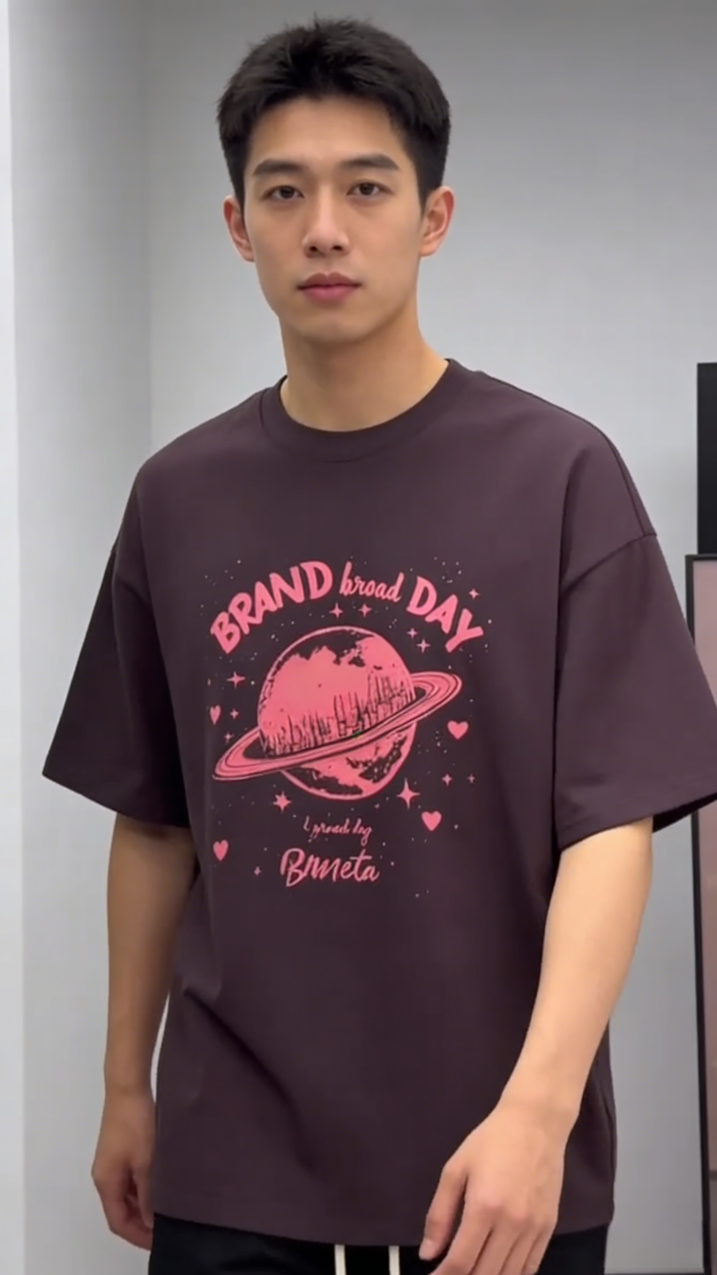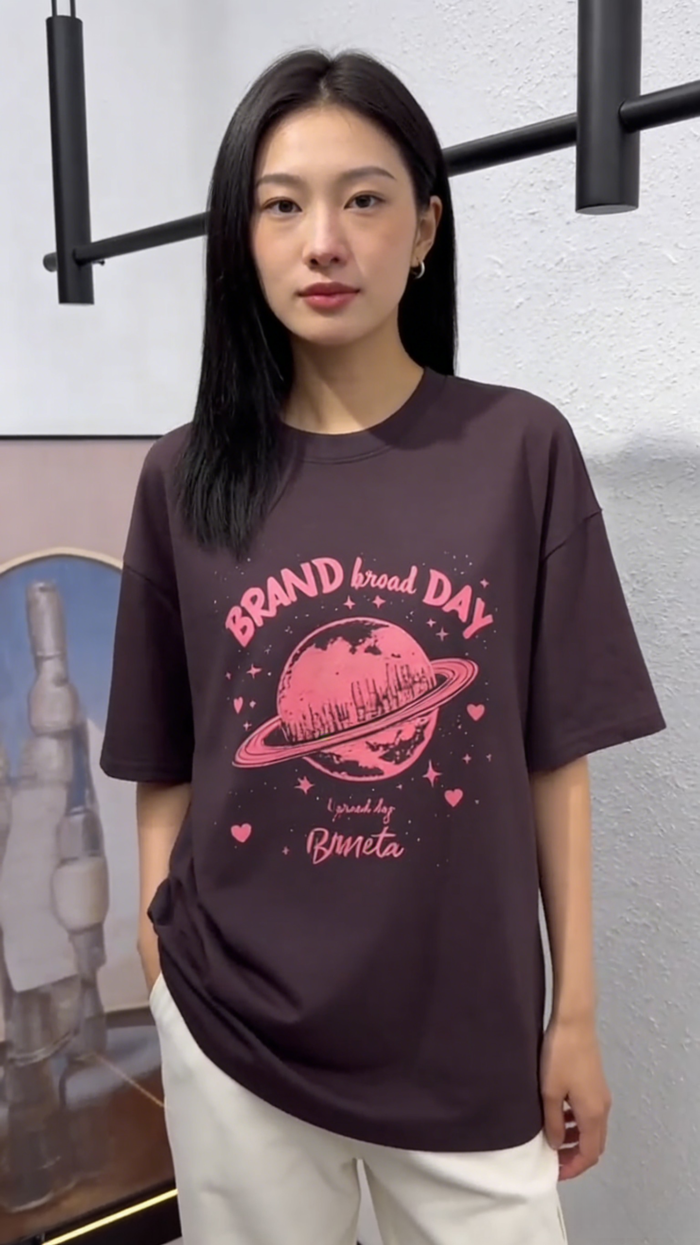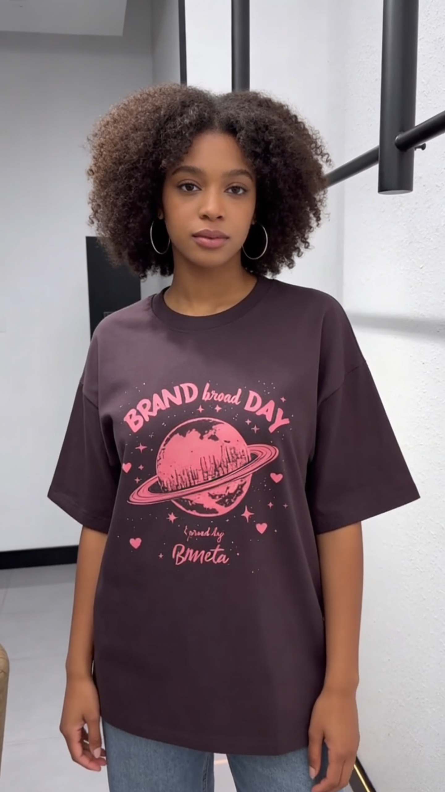 - Design: Pink planet graphic with “BRAND broad DAY” text & star/heart accents