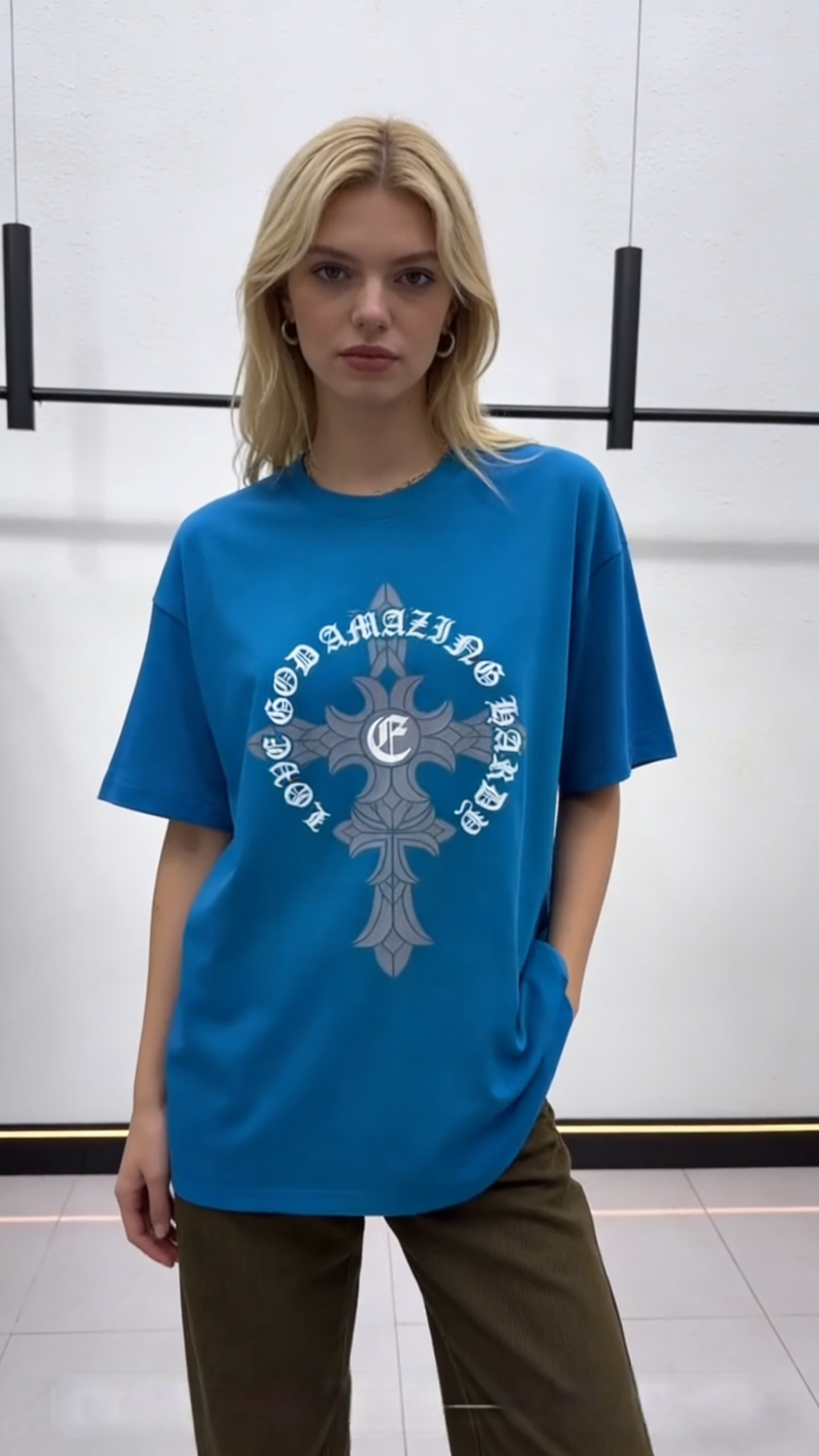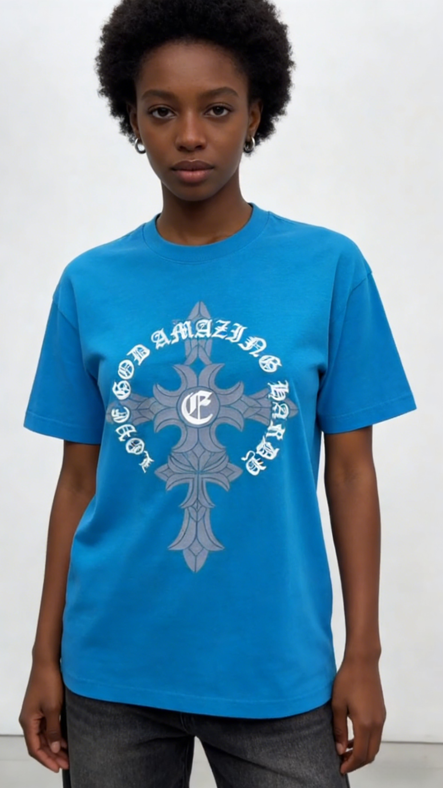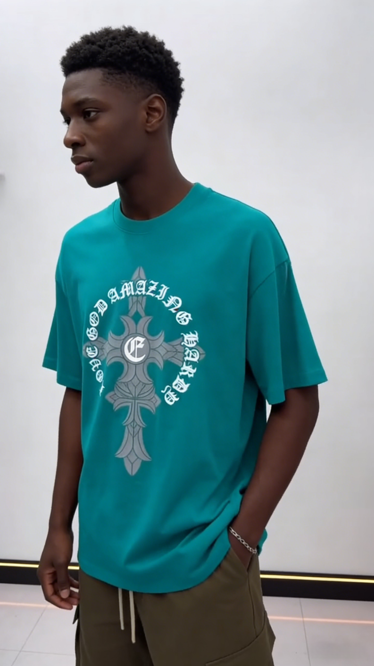 - Primary Keywords: 100% cotton T-shirt, oversized streetwear T-shirt, gothic cross graphic tee, “GOD AMAZING” text shirt, wholesale cotton T-shirts