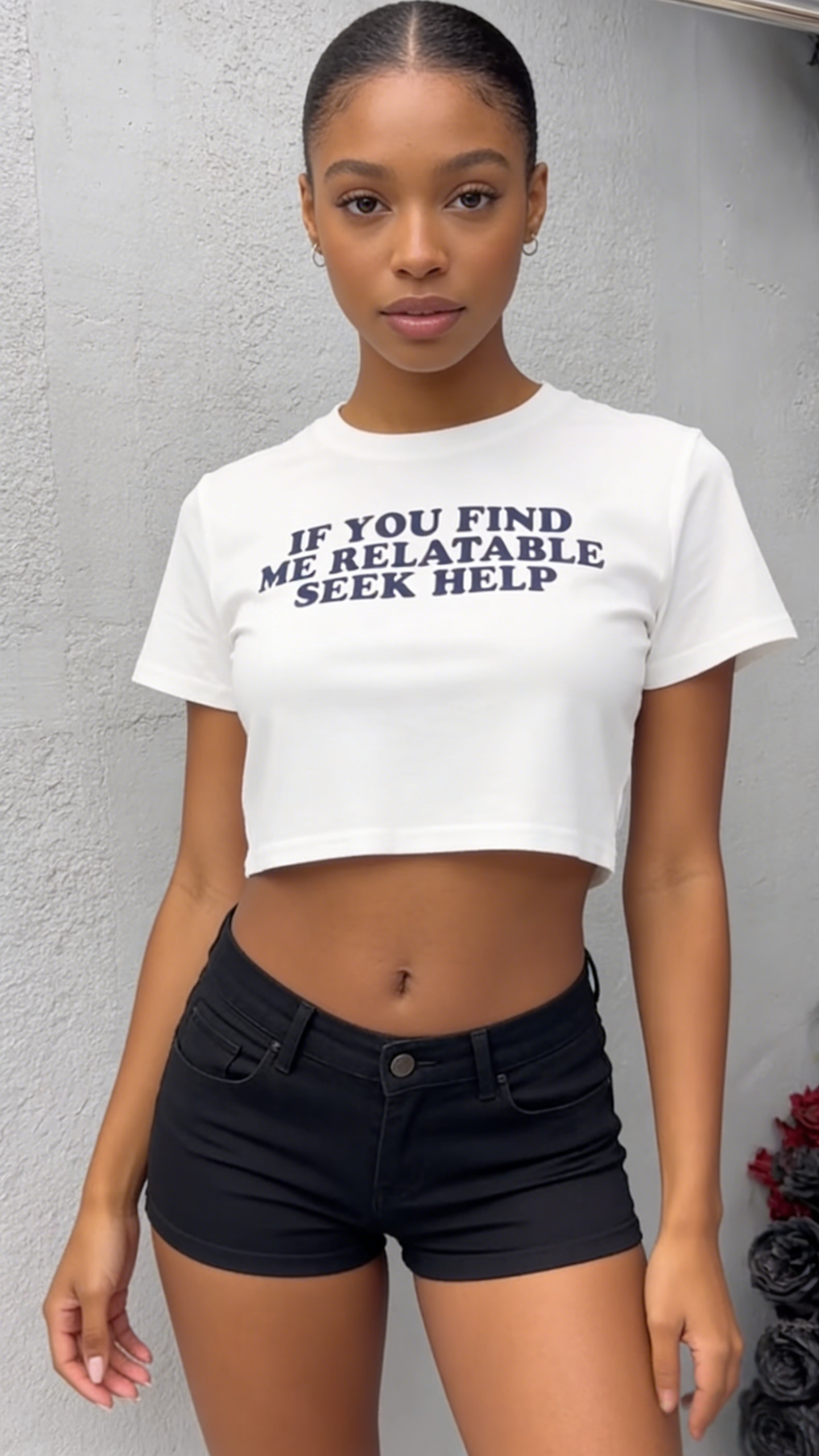 - Primary Keywords: 100% cotton cropped T-shirt, fitted slogan T-shirt, “IF YOU FIND ME RELATABLE” graphic tee, edgy streetwear cotton shirt, wholesale cotton T-shirts